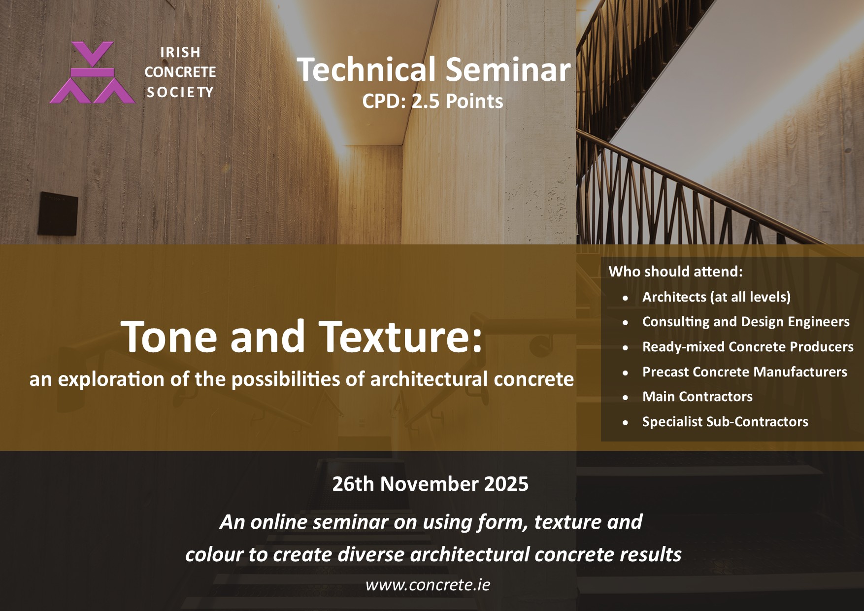 About The Irish Concrete Society is a not for profit learned society founded in 1973 to promote excellence in the use of concrete in Ireland. It is a cross-sectorial, independent, impartial, science and engineering based organisation established to cater for the needs of all who have an interest in concrete, in its widest sense.